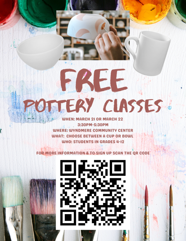 Wyndmere Public School will be offering free pottery classes for students in grades 4-12 on March 21st and 22nd. Students will have the opportunity to choose between a cup or a bowl. These classes are being offered because of an artist-in-residence grant through the state of North Dakota! See the flyer for more details.